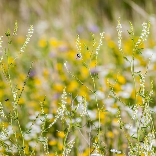 Cette légumineuse mérite tout notre attention car elle extrêmement mellifère. C’est même une des reines dans sa catégorie. Sa dénomination latine est évocatrice : « melilotus albus » signifie « lotier à miel » !